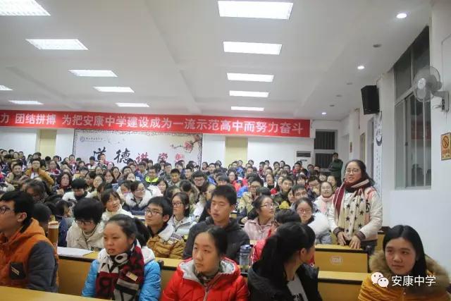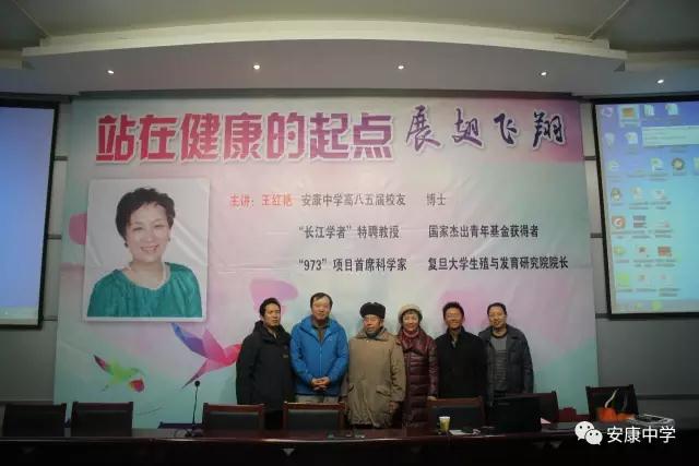 2016圣诞节,安康中学高八五届校友,复旦大学生殖与发育研究院院长、博士王红艳女士及其丈夫刘佩先生来到安康中学,和安中学子们“站在健康的起点上”探讨人生。