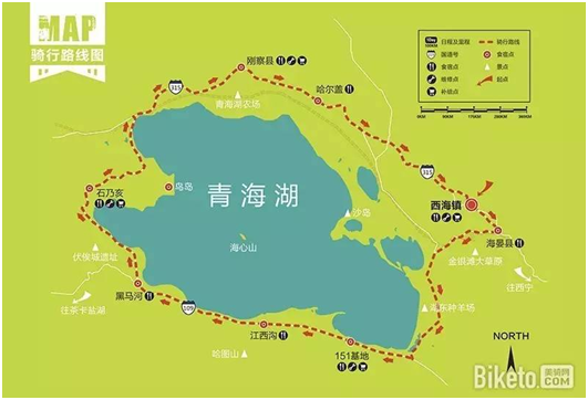 ▲常规的环青海湖骑行路线