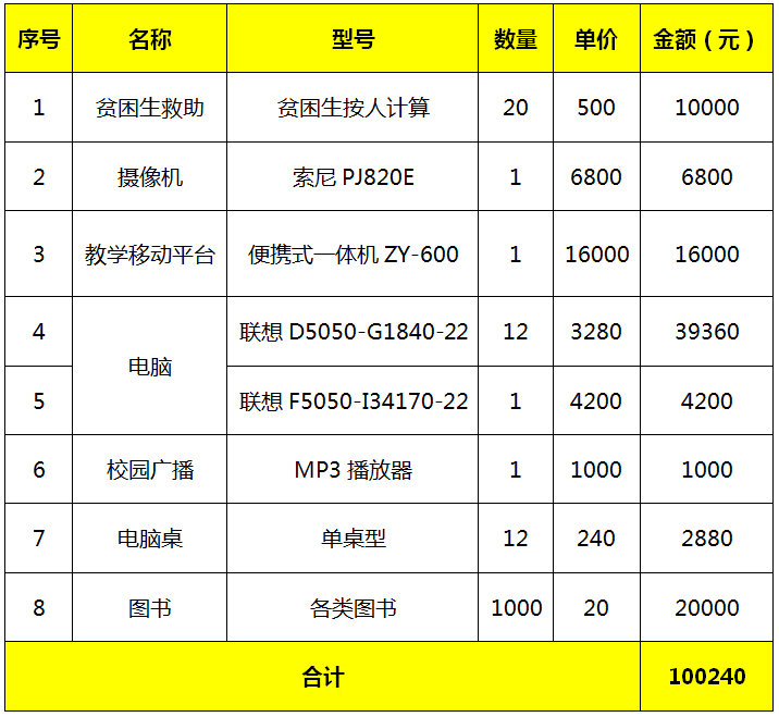 沿河小学贫困资助申请预算表