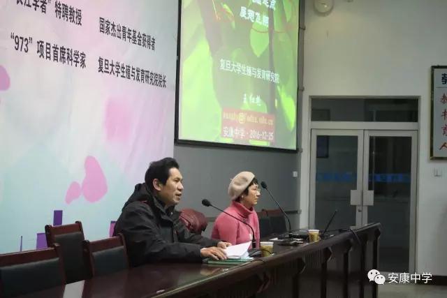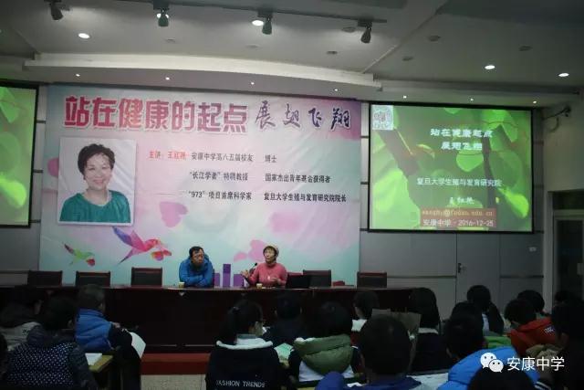 2016圣诞节,安康中学高八五届校友,复旦大学生殖与发育研究院院长、博士王红艳女士及其丈夫刘佩先生来到安康中学,和安中学子们“站在健康的起点上”探讨人生。